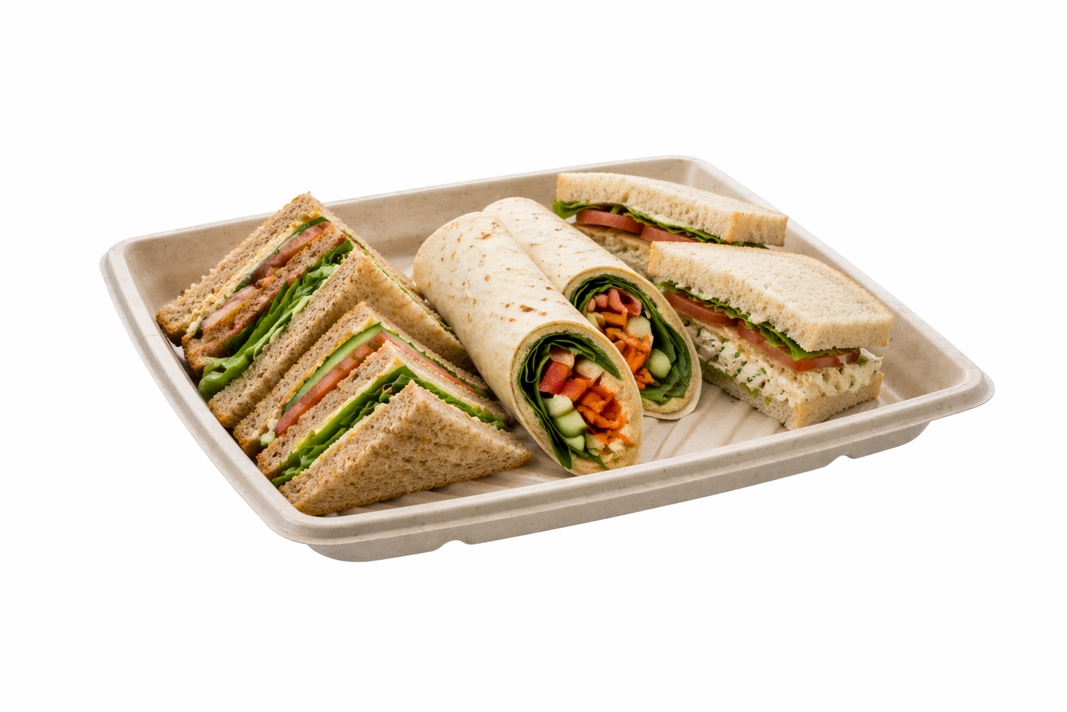 The pulp platters have recyclable secure locking, leak resistant PET lids which fit perfectly, to showcase freshness in foods.
