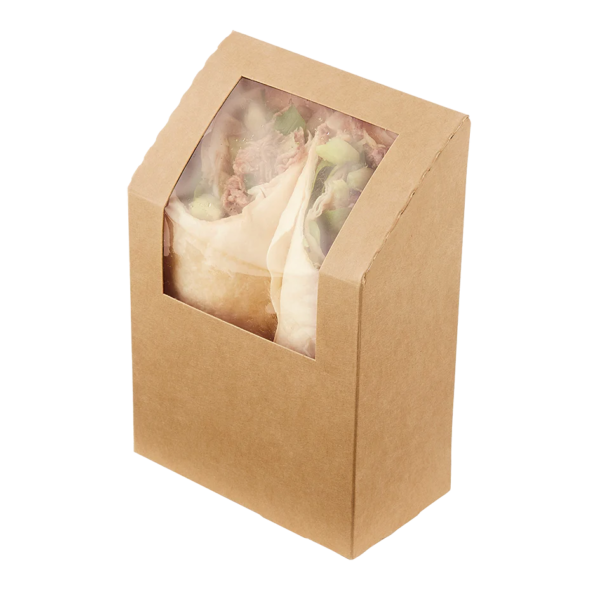 This tortilla box is made from compostable kraft paper board. It has a recyclable window to showcase your products.